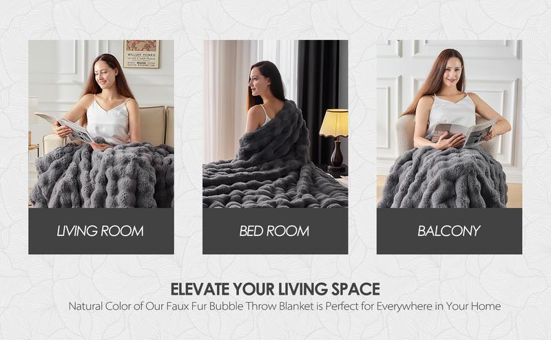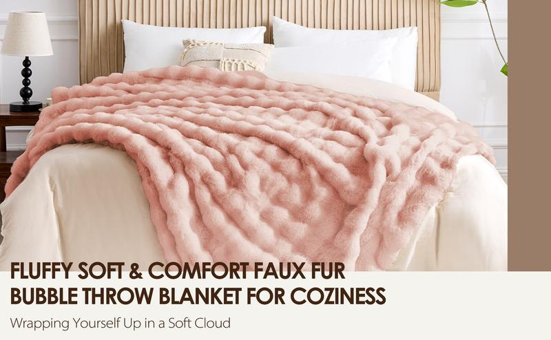 Fluffy Faux Fur Throw Blanket Cozy Soft Plush Faux Rabbit Fur Throw